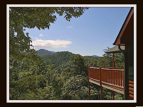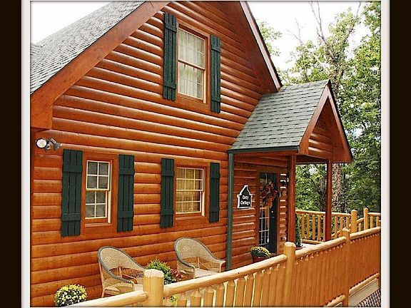 Beautifully kept log cabin in the woods with spectacular views of the Smoky Mountains! Very easily accessible to both Pigeon Forge and Gatlinburg (5 minutes off Spur). Exterior logs are in excellent condition. Decks are, too. Cabin has two levels of decks in addition to a lovely and large gazebo/fire pit shared with neighbor cabin. Interior is all-wood. Upscale furnishings. Large windows to enjoy the mountains from gathering room, kitchen, master bedroom, den, and loft area. Master suite has private entrance to deck and large bathroom. Half bath/laundry on main level, too. Upper level includes full bath and two bedrooms, and lower level includes den (with fireplace), game room, wet bar.