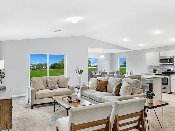 NEW CONSTRUCTION WITH WARRANTY! The Palm delivers 1,550 sq ft of living space featuring a large Great Room under a vaulted ceiling and the private covered lanai just outside the sliding glass doors, perfect for indoor-outdoor entertaining. At the heart of this open floor plan, the kitchen boasts a freestanding island and walk-in pantry next to the dining room with a tray ceiling that's filled with natural light. The primary suite features a walk-in closet and bathroom with a dual-sink vanity, shower, and extra storage in the linen closet. This home boasts hurricane-impact windows and doors, designer cabinetry in the kitchen and bathrooms, a stainless steel range, microwave, and dishwasher, and an attached two-car garage. Pictures, renderings, & virtual tour are of similar home & are used for display purposes only. Special builder closing cost incentives are available for using a preferred lender & title company. Estimated delivery September.
