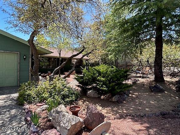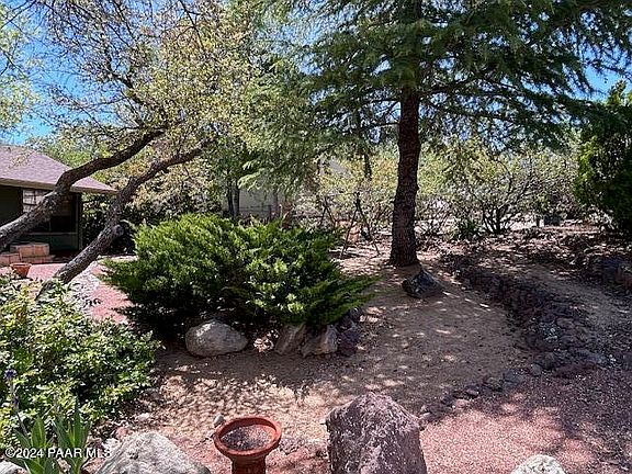 Great investment opportunity to own a wonderful property in the heart of Prescott. The outdoor space is lush and serene, like living in a park, with a great deck for curling up with a book and glass of wine or cup of coffee. The home boast a huge primary bedroom with an attached large seating area. A third bedroom and full bath are accessed from the outside providing rental opportunity and private space for guests. With some paint, carpet and upgrades to the kitchen this is a wonderful family home. The home is being sold as is. Seller has limited knowledge of home.