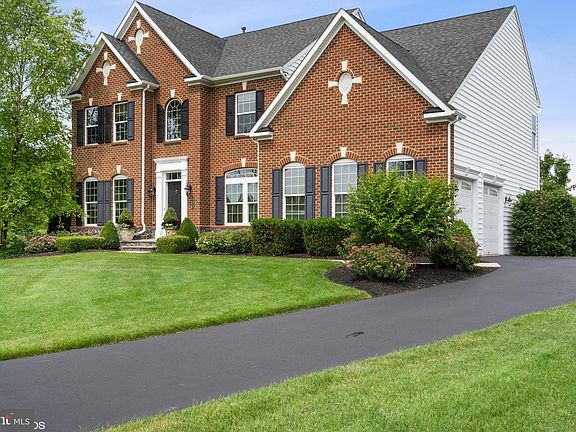 London Court, an enclave of homes, surrounded by over 49 acres of London Court Homeowners Association Open Space, with bucolic views and within minutes to NJ and the towns of Washington Crossing and the sister cities of New Hope and Lambertville. This better than brand new & expanded and customized Empress model, built by NVHomes, is on almost a half-acre with extensive and professional landscape and hardscape, including specimen plantings, perennial gardens, natural evergreen fencing borders and Pavers walkway, steps and patio created and implemented by Gaspers. This home boasts a full brick front with stone accents and a side 2-car garage. The paved driveway, leading to the two-car, side entry garage with automatic openers and convenient keyless entry allows for additional off-street parking. The front walkway leads way to the front and main entrance which opens into the two-story entry foyer, with hardwood floors and Williamsburg, turned staircase, features crown moldings, toned walls and flows to the open living room with tray ceiling, on the left and adjoining formal dining room with a tray ceiling, shadow boxing, walk-out bay window, decorative chandelier and convenient kitchen access. The study, off the foyer to the right, features a French door, 2 blinds and crown moldings. The half bath is located off the entry foyer and features a pedestal sink, hardwood floor & decorative lighting. The Gourmet Eat-in Kitchen features recessed lighting, 42 light cherry cabinets with pull out shelving, drawer storage, granite counters with double stainless under-mount sinks, LZ Susan, a center island with accent lighting, all appliances, including a built-in microwave oven, self-cleaning double wall ovens, gas cook-top, French door refrigerator with pull-out freezer drawer & dishwasher. The pantry closet completes the kitchen area. The adjoining morning room, which is light and bright, features a volume ceiling with recessed lighting, decorative chandelier and a French door to the rear yard/patio. The large and open family room, with a gas fireplace with mantle, marble surround and accent lighting, features dental crown moldings and boasts double, built-in walk units with cabinets with pull-out drawers. There are hardwood floors and 9 ceilings throughout the first level. The upper-level hallway overlooks the grand foyer and leads-way to the oversized, primary bedroom suite with a tray ceiling & decorative chandelier, double walk-in closets, additional storage alcove and private bath. The deluxe primary bathroom boasts a garden tub, raised height double vanities with granite counters, over-sized shower stall with built-in seat, decorative tile package and private toilet room. There are three additional bedrooms with ample closet storage, custom window treatments and toned walls. The main hall bathroom features a cherry vanity with granite counter, double under-mount sinks, accent mirror & lighting, tub/shower with upgraded tile surround, toilet area and linen closet. The convenient laundry room, complete with washer and dryer, features a ceramic tile floor and scuttle access to the attic. There is a full unfinished basement plumbed for a full bathroom, with a utility area and walk-out to the rear yard, 2 zone HVAC and a whole house generator!