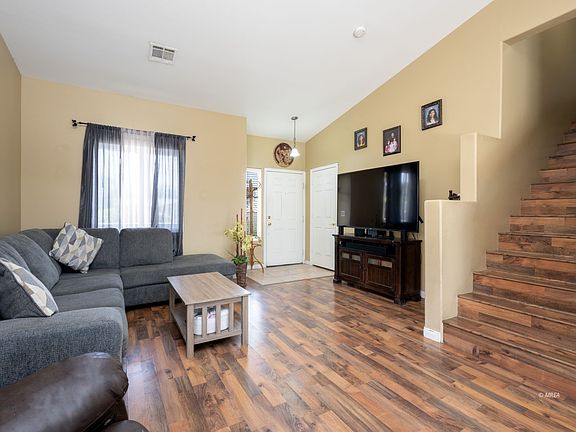 Townhouse with a Garage... This is a 3 Bedroom, 2.5 Bathroom Townhome with a 2 Car Garage (over 500sq.ft. garage space). This townhome was Built in 2006 and features Vaulted Ceilings in Living Room and Dining Room, Kitchen has white cottage-style cabinets and white appliances. Half Bathroom Downstairs for guests. Downstairs has Laminate Flooring with Tile in the Wet Areas (Kitchen and Bathroom). The 3 Bedrooms upstairs have carpet. Both upstairs Bathrooms have Tile Flooring. The home has Water Softener installed. HOA Maintains the Front Yard and provides Insurance for the structure. Covered Patio in Frontyard. The Backyard is mostly a Concrete Slab which is great for entertaining.