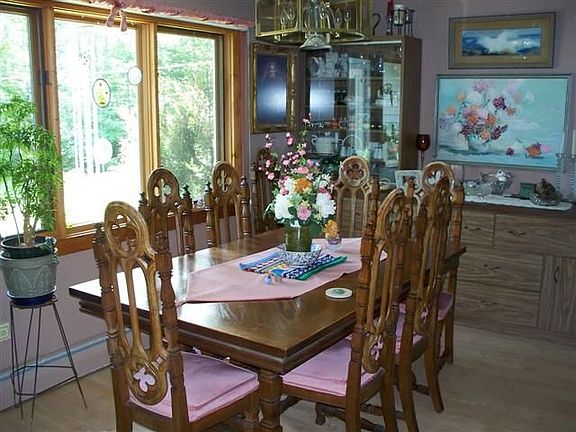 NEW PRICE! River frontage with privacy and views of distant hills. Charming cape style home. Enjoy the sound of the river offering peace and tranquility. Spacious back deck with stairway leading to the river. Open concept kitchen leading to dining room. Two enclosed porches. Second floor has two bedrooms, bath, plus large office/den/craft room area. Exquisite landscaping. Circular paved driveway. Fireplace in living room. Hardwood floors. New windows. Fabulous property!
