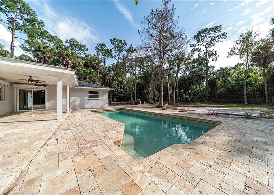 Price decreased TO SELL!!! Pool home on a 2.5 acres lot surrounded by mature landscaping. Brand new 2019 roof and AC system. Totally renovated 3 beds, 2 baths, and 2 car garage. Modern style open concept kitchen with new stainless steel appliances. Quartz counter tops, a lot of high gloss European style wood cabinets, high tech faucets and light fixtures were installed in kitchen and both bathrooms. Frame-less glass doors and panels for shower and toilet privacy in the master bathroom that also includes his and her sink and square large ceiling shower. Large walk in closet with barn door for a luxury touch. New water heater, ceiling fans, LED lights, and newer water softener. Enjoy the outdoor living space with great view to the wooded landscape area around the property, concrete southern exposure pool surrounded with pavers and travertine. Built in grill for outdoor entertainment. This property is located less than 5 miles from I-75 and 3/4 mile to Collier Blvd, between Pine Ridge Rd. and Golden Gate Pkwy. Enjoy this beautiful home conveniently located in the privileged GOLDEN GATE ESTATES area of Naples. Be close to the city and enjoy at the same time the country life style!!!