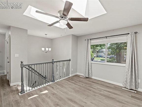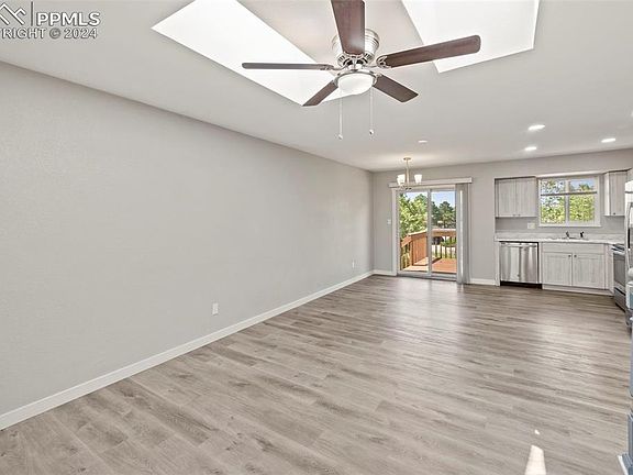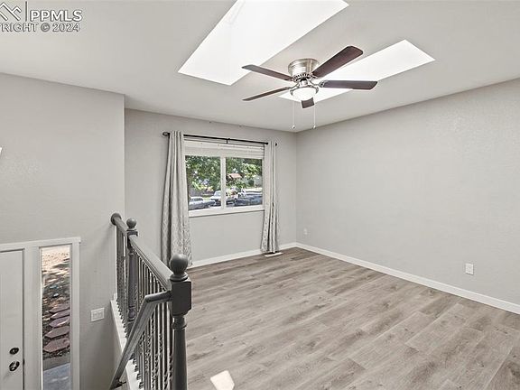 Wonderful bi-level home with all the updates! As you arrive, you’ll be greeted by mature trees and a charming stucco exterior with vinyl windows. This home backs onto a greenway and features fully updated interiors with two-tone paint, remodeled kitchen and bathrooms, and LVP flooring throughout. The upper level includes a walkout to a large deck, and the primary suite has an attached bathroom. The kitchen is equipped with stainless steel appliances. On the lower level, the rec room features a cozy fireplace, and there are two additional bedrooms, a 3/4 bathroom, and a laundry room. Central air keeps the home cool in the summer. Enjoy quick access to Academy Blvd and Powers. The backyard is adorned with large pine trees, making this a great home ready for you to make your own.