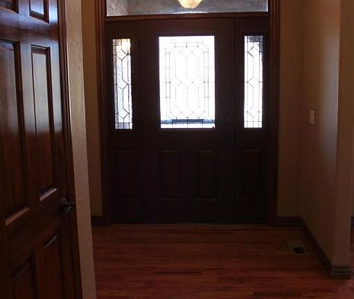 You'll find quality throughout this builder's personal home located in Lakes at Wild Horse. This outstanding brick & stone home features 4 bdrms, living room, formal dining, spacious kitchen & eating area, 3 full ba. & 3 car gar.. Beautiful stone gas fireplace in living rm. - Elegant master bath w/granite on his/hers vanities, 2 walk-in closets, jetted tub & spacious walk-in shower - Custom kitchen cabinets w/granite countertops & large eating bar - gas cook-top - built-in wall oven & microwave - walk-in pantry. Solid wood six panel doors & trim. Gorgeous solid oak hardwood flooring. Carpet in bedrooms - porcelain tile in baths & laundry. High efficiency furnace/air. Partially covered, tiled patio looks out onto lovely pond w/fountains. Walking distance to community pool & play area.