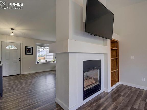 Welcome to this beautifully updated 2-story home tucked at the end of a quiet cul-de-sac and backing up to serene open space. With 4 bedrooms, 4 bathrooms, a 2-car garage, and a newly finished basement, this home offers both space and flexibility in a peaceful setting. Step inside to find stylish laminate flooring throughout the entire home for ease in cleaning & a bright, open layout. The main level flows effortlessly from the living room into the family room, divided by a stunning double-sided fireplace. The kitchen features on-trend colors, stainless steel appliances, and a dining area with a walk-out glass door to the backyard — perfect for everyday living and entertaining. Upstairs, you’ll find spacious bedrooms with ample closet space, while the finished basement offers even more room to spread out. With a full bathroom, laundry area, and flexible layout, the lower level could function as a secondary suite, home office, or secondary family entertainment room. Stay cool this summer with the Brand new central A/C, and enjoy the beautiful curb appeal with mature trees and thoughtful front landscaping. Located with neighborhood trails and open space right behind the home. This home offers quick access Peterson Space Force Base just a few minutes away and is nearby shopping, dining, and conveniences. If you’re looking for a move-in-ready home in a tucked-away location with room to grow, this is the one!