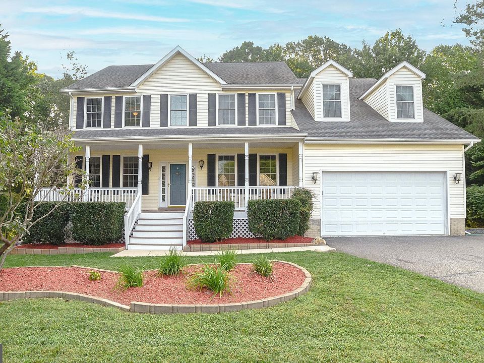 Lots to love in St. Leonard! This Woodhaven Colonial offers 5 upstairs bedrooms, lots of upgrades, a great commuter location, composite decking and a detached 30x24 garage/workshop! Hardwood and DuraCeramic tile flooring are featured and freshly painted and new carpet throughout the house. Welcoming two-story foyer, dedicated home office/playroom, formal living and dinings rooms and spacious family room surround the eat-in kitchen w/ stainless appliances, Maple cabinets, island, pantry and built-in desk. Get cozy in front of the propane fireplace or enjoy a nice day on the low-maintenance deck that backs to trees. Primary suite with big walk-in closet and bath featuring soaking tub, separate shower and double vanities. Four more bedrooms upstairs provide plenty of space for all. Lower level features a partial-finish bonus room with laminate wood flooring and drywall already installed. With the egress window, add a closet and it could be a sixth legal bedroom. Lower level also has tons of potential with full bath rough-in and unfinished space w/French door walk-out to paver patio and backyard w/white picket fence. Two-car attached garage enters into convenient mudroom. Detached garage/workshop w/ 220/v electric is a car enthusiast or wood worker's delight! No HOA, new roof and gutters in 2013, new windows and water heater in 2017 and 2021 1st-floor HVAC and leaf filter systems are finishing touches that make this a "don't-miss" home. Seller is offering a 1 year Home Warranty! Schedule your showing today!