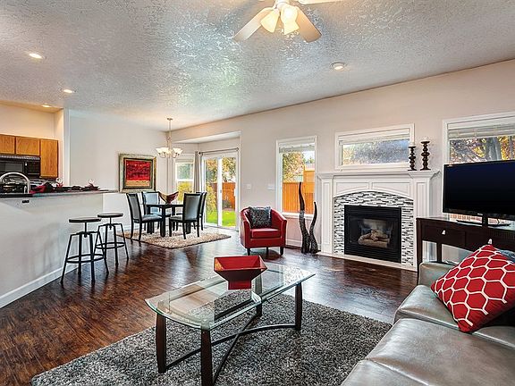 Tucked away on a low-traffic street in a convenient NW Boise location, this charming single-level residence radiates with curb appeal and provides an incredible value! Meticulously landscaped grounds welcome guests into a beautifully upgraded interior. Hand-scraped hickory pergo floors add a rustic element to the interior while tall ceilings accentuate the open design. A gas fireplace clad in artistic mosaic tile provides warmth and character to the great room. The custom kitchen features a large breakfast bar, flat panel cabinetry, sleek black appliances, and upgraded tile backsplash to match the fireplace. The split-bedroom design provides privacy to the master suite with access to a private patio. The master bath features a dual-sink vanity with granite counter, tile frameless glass shower, heated tile floors, and spacious walk-in closet. The fully-fenced backyard offers plenty of play space for children and pets, plus a patio for outdoor entertaining. Mature foliage provides shade and privacy to the residence. The location is within minutes to downtown, foothill trails, and shopping! The fresh upgrades and convenient setting provide a fabulous opportunity at a great price!