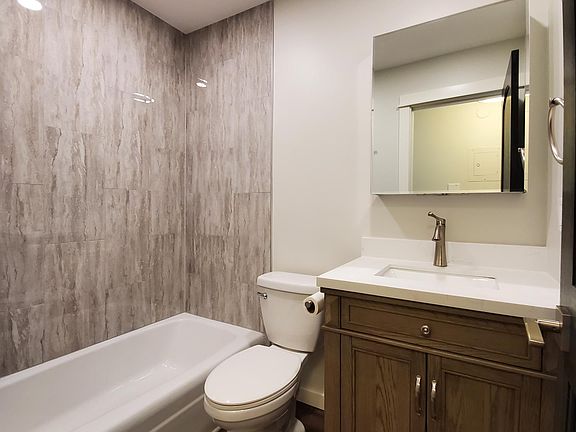 This is a 1 bedroom, 1 bathroom condo that has been completely remodeled and not yet lived in since all work was completed. It features brand new cabinetry with soft close doors and drawers, granite counter tops, tiled back splash, and brand new stainless steel top of the line appliances. New luxury vinyl flooring throughout. New interior doors and mill work. All ceilings and walls have been painted. Bathroom features new tiled shower surround, toilet, and vanity. LED lighting throughout. Unit has large storage closet, coat closet, and linen closet. 1 car garage included. The building offers 2 saunas, outdoor swimming pool, party room, and a storage space. Heat, water, sewer, garbage are included in rent. Tenant is responsible for electricity.