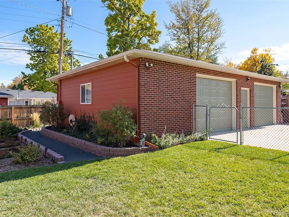 You've just discovered your dream 1000 square foot, 4 car detached garage that also comes with a 4 bedroom home. Solidly built with brick and Hardy Plank siding, the garage is heated, has a compressor room with 220 electric (compressor included) and a separate car bay for your special vehicle. With Englewood's ADU rules, the garage (or a portion of it) could possibly be converted to living space and at a minimum is spacious enough to host group parties and family holiday dinners. Inside, the home is freshly painted, features hardwood floors, plenty of closets and lots of natural light. The updated kitchen has stainless steel appliances and the washer and dryer are included. There's a full finished basement with an ensuite bedroom, large rec room and plenty of storage. Outside has a lovely yard with backyard landscape lighting, a stout 10' x15' shed, and gutter guards to help with maintenance. This rare gem for a mechanic or hobbyist is tucked away in a quiet Englewood neighborhood nestled among mature trees and neighborhood parks. Near Jason Park, Englewood Rec Center and Belleview Park, this location offers easy access to Englewood City Center, light rail and downtown Downtown Denver, Downtown Littleton and the Platte River Trail. Nixon's Coffee House, Romano's Italian Restaurant - a neighborhood staple since 1967, Duffeyroll Bakery Cafe, and Sanitas Brewing Company are all just minutes away. Your future home has new exterior paint, is beautifully landscaped with xeric plants and is waiting for your tinkering to begin. Check us out on YouTube https://www.youtube.com/watch?v=T9P-ucozvMU