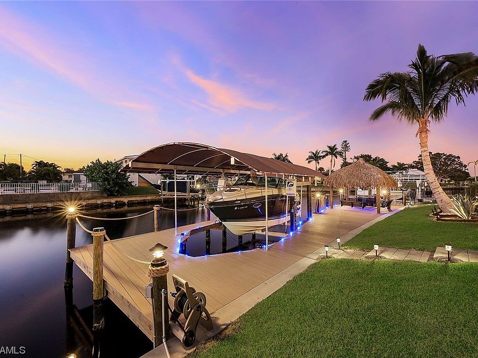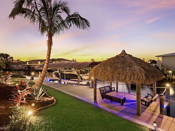 No Expense has been spared! NEW 2022 custom built turnkey home with American Homeshield Complete 1 Yr Warranty. Perfect for AirBNB (home has never been rented but if you’re wanting to rent as an AirBNB it’s perfect investment property) Appointed w/new furniture & decorator package TURNKEY all included. As soon as you walk in you’ll be greeted by soaring ceilings as high as 14ft. & premium floor tile in all common areas. Kitchen features premium backsplash tile, granite countertops,& upgraded 42” soft close cabinets & drawers w/rollout outs. Brand NEW 90' Frontage Seawall. Extensive indoor & outdoor ambience lighting package in the pool, spa, landscaping, front & back of home sets the mood for any occasion. There’s even a night time fishing light & runway lights to your own PVC decking dock w/14,000LB remote control boat lift. Enjoy bathing in your heated saltwater pool with spa. All bathrooms feature premium tile & matching granite countertops. Oversized 3 car garage w/enough room to fit an extended length Cadillac Escalade. 2 short routes out to open water. The Lido Canal w/11ft Bridge Clearance or The Plato Canal w/9ft Bridge Clearance. Spend your best days entertaining under your Tiki Swing Seats capturing beautiful FL Sunsets. A Stones throw to Cape Coral’s Thriving Downtown where you’ll find the best,shopping,restaurants,& nightlife Cape has to offer. Schedule a private showing today.