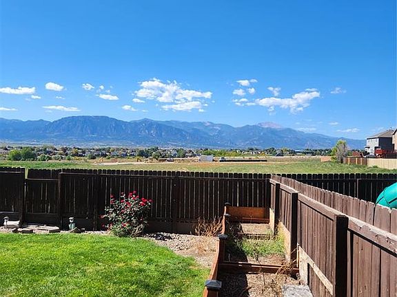 This exquisite 2-story home offers comfort, featuring 5 generously sized bedrooms and an office situated on the main level. With 3.5 bathrooms. A spacious 3122 sq ft layout. As you enter, you'll be greeted by luxurious vinyl plank flooring that extends throughout the main level. The chef’s kitchen stands out with its impressive large island, w/ stunning quartz countertops. The dining area, enhanced by French doors, opens up to a beautifully crafted upper wooded porch, offering a tranquil space to unwind. Equally impressive, a 43 ft x 20 ft concrete patio adorned with an elegant pergola. A concrete pathway runs along the left side of the house, leading to the backyard, while long concrete stairs on the right side also leading to the backyard for event gathering. The Sellers's significant upgrade to the property! Master Bathroom: Enhanced with a rain shower and new tiles. Outdoor Space : Pergola has been tiled. Landscaping : New flower bed for improved curb appeal. Master Closet : Extended for additional storage and organization. Garage : Epoxy floor for durability, plus a keypad for easy access and extra shelving and finished walling. Laundry:Washer and dryer combined unit for spacesaving. Flooring : New carpet throughout the house. Fully finished, Basement:5th bedroom and ample recreational space—ideal for a home theater, game room, gym, or guest accommodation. Attached tandem two-car garage that provides not only parking but also substantial storage options. With its versatile layout, stunning views, and prime location, this property offers an exceptional opportunity that combines functionality with the charm of its natural surroundings. Enjoy breathtaking mountain views that enhance daily picturesque backdrop. Close to Ft Carson, Shriver Air Forcebase and Peterson Air Force base. Few minutes to shopping areas. Fire station. Don’t miss the chance to make this dream home yours—call today!