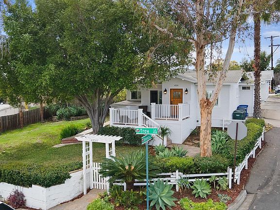 This 1924 Craftsman home is Historically registered! 3 bedroom, 2.5 baths with over 1700 est. square feet located on an oversized lot! Property comes with Permit ready plans for a 3 bedroom / 2 bath ADU, already approved by the La Mesa Historic Preservation Commission. The plans will convey with the property (new owner must submit to the city)! Walking distance to La Mesa Village with loads of privacy and opportunity! Completely upgraded and remodeled in 2009. Detached office, inground saltwater plunge pool, with a Baja shelf and 3-cascading water spills. This is a single-level home is located on a corner lot. Two of the three bedrooms have their own baths attached. Formal living and dining rooms, plus an eat in kitchen, with stainless appliances and granite counter tops. Separate media room with wet bar and access to the pool and yard. Multiple decks and patios, plus a huge grassy yard. Third bedroom has a separate entrance, potential for a granny flat. Attached garage.