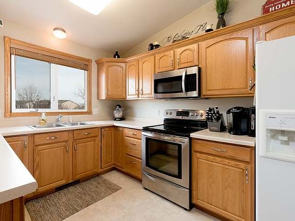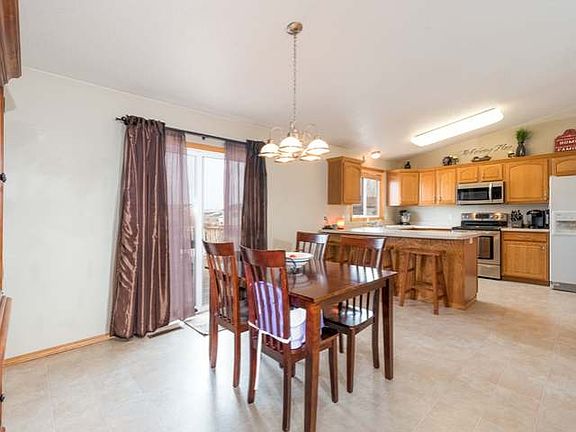 Great split entry level home located in NE Bismarck close to The Sunrise Center, schools, shopping walking paths and easy access to I-94. 4 bedrooms and 3 full bathrooms. The kitchen offers a large breakfast bar and the dining room opens to a large maintenance free deck and fully fenced yard w/ shed, concrete patio and sprinklers. The lower level family room hosts a gas fireplace and daylight windows. 2 bedrooms on this level and another full bath. Triple insulated garage w/ floor drain. See this wonderful home today!