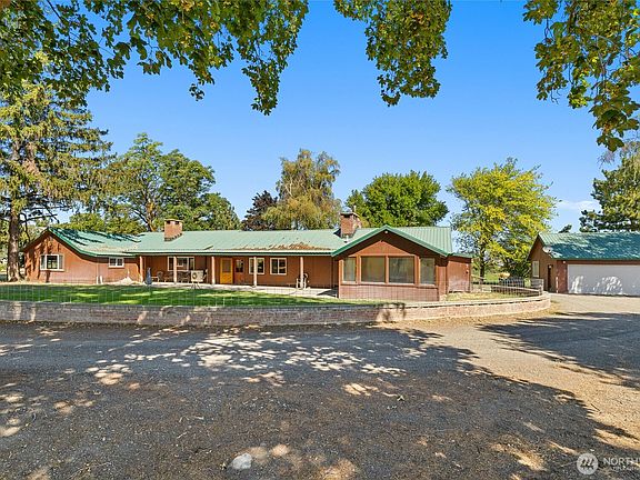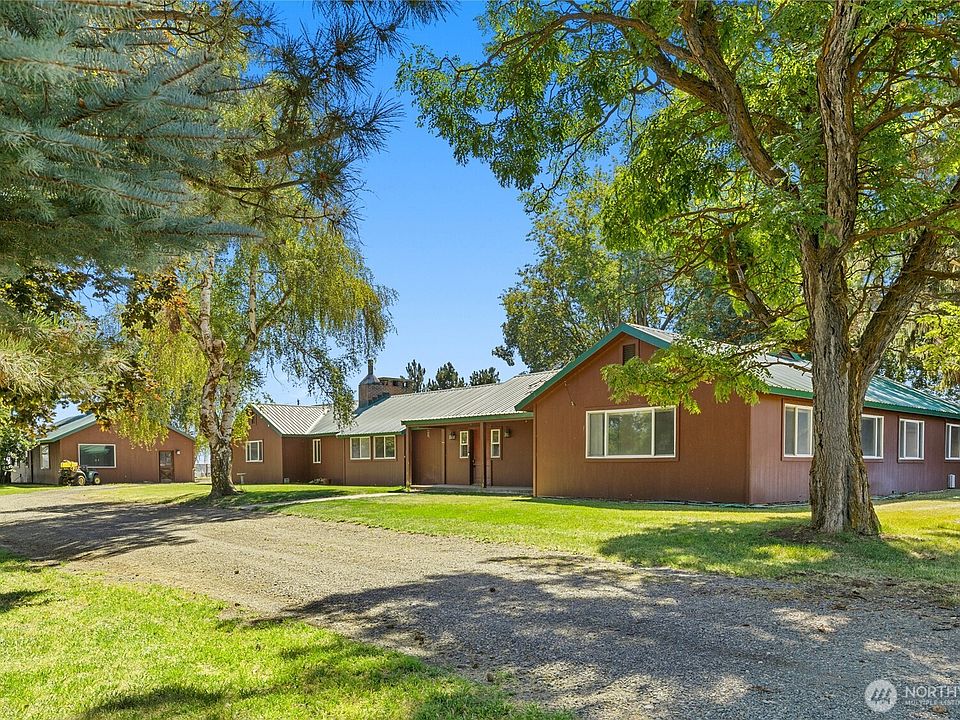 Discover the historic L.T. Murray Ranch House, tucked away on 8.22 irrigated acres on Ellensburg’s westside. This 3,190 sq. ft. ranch blends rustic charm with timeless style, featuring a vaulted great room with clear fir ceilings, a striking stone fireplace, and solid oak floors. The home offers 2 bedrooms plus a den/office, while a recently updated 1-bedroom, 1-bath ADU provides flexible living or guest space. Nestled among mature trees, the property also includes several original barns and loafing sheds, preserving its ranching heritage. A rare opportunity to own a secluded historic home with acreage, character, and endless potential.