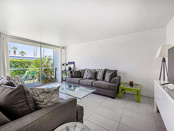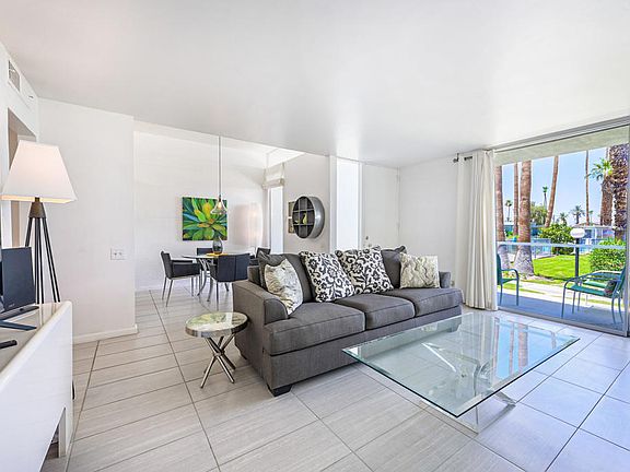 Discover your dream retreat in the heart of Palm Desert at Whispering Sands. This fully redone, mid-century modern condo offers sophisticated living with a touch of elegance. Step inside to find sleek tile flooring that flows seamlessly throughout the home, leading you to a contemporary kitchen adorned with quartz countertops and crisp white cabinets. The spacious master bedroom features a large slider, inviting natural light and easy access to outdoor relaxation.The entire interior is freshly painted white, creating a bright and airy ambiance. With abundant windows in the living space, the condo is filled with natural light, enhancing its open and welcoming atmosphere. Your guests will appreciate the comfort of the well-appointed guest bedroom and a guest bathroom complete with a convenient shower stall.Whispering Sands provides a serene community atmosphere while being just moments away from Palm Desert's finest shopping, dining, and entertainment. This condo perfectly blends mid-century modern style with desert tranquility. Enjoy easy access to nearby golf courses, hiking trails, and cultural attractions, making it an ideal home for those seeking an active lifestyle.Embrace the perfect combination of modern style and comfort in this exceptional condo. Make it yours today and start living the lifestyle you've always dreamed of. Whether you're looking for a full-time residence or a seasonal escape, this condo offers the best of Palm Desert living.