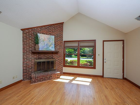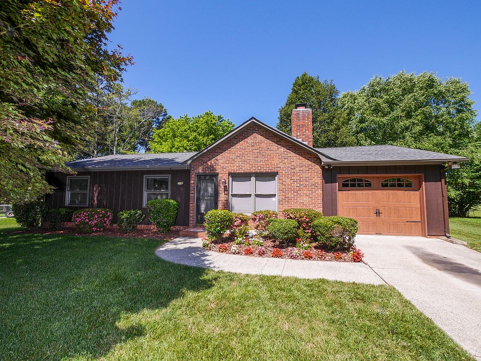Adorable ranch home on large, level lot. Upgrades list includes new top of the line windows, new garage door, new roof, laminate wood flrs (no carpet), ceramic tile, custom closet organizers, & renovated baths. Soaring 2-story great rm ceilings, lots of natural light. Stately brick fireplace. Large master w/walk-in closet. All bedrms have ceilings fans. Fresh neutral paint thru-out interior. Deck looks out to huge bkyd w/mature trees, shed, & garden. Custom irrigation system for garden lovers.
