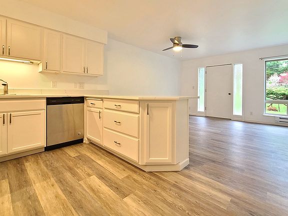 Remodeled ground level unit has features new flooring, countertops and appliance. This unit is spacious and airy. Floorplan has a semi open concept feel, large picture window in living room to enjoy the nicely kept landscaping, two bedrooms, one bath and private laundry room including washer and dryer. Conveniently located off Evergreen Way with easy access to parks, shopping, schools and I-5. OUR LEASE REQUIREMENTS: All persons 18 years and older MUST complete the online application/screening. Lease Requirements: Credit score of 650+ | Pass Criminal History Check | No Bankruptcies | No Evictions | Good Rental History | Min. monthly income requirement $5,150 | Non-Smoking Property Applications MUST include: Photo of Government issued ID (both sides) | Photo of Pet(s) | 2 months current pay stubs | Sorry, no "Co-Signer" Leases | No tenant-provided consumer reusable (portable) tenant screening reports accepted | Standard 12 month lease Pet Policy: One small dog up to 20lbs. NO Cats Allowed. (No dangerous breeds, must be spayed/neutered, No puppies or kittens) Each pet requires a $250 Pet Fee, a $250 Refundable Deposit and a $45 pet rent each. (We follow all Fair Housing Guidelines regarding pets.) PET SCREENING IS A REQUIRED PART OF THE APPLICATION PROCESS FOR ALL APPLICANT Utilities: Tenant to pay all utilities. Rental Terms: Application Fee: $55 | Holding Deposit, 25% of 1st Months l Rent $1,725 | Security/Damage Deposit $1,725 | $250 Document fee applies l Monthly $35 Resident Benefit Package *RENT SMART! REAL PROPERTY MANAGEMENT NORTH PUGET SOUND DOES NOT ACCEPT OR REQUIRE CASH OR WIRED FUNDS*