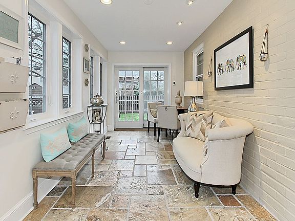 Updated Arlington Forest brick colonial in move in condition with fresh paint throughout and refinished hardwood floors! Enter through a Sunroom with a wall of windows, recessed lighting, and ceramic tile floor (heated flooring) with sliding doors leading to the back yard. Both the living room and dining room feature recessed lights. The Galley style kitchen hosts track lighting, granite counters and hardwood floors. Den/Office (could be a 4th Bedroom) off kitchen room with ½ bath, closet, and rear entry. Three bedrooms and full bath upstairs. Full basement with vinyl floor ready for finishing. Fenced rear yard with rear stoop and patio. The driveway easily parks two cars.