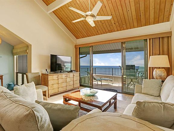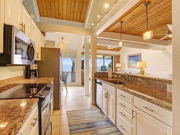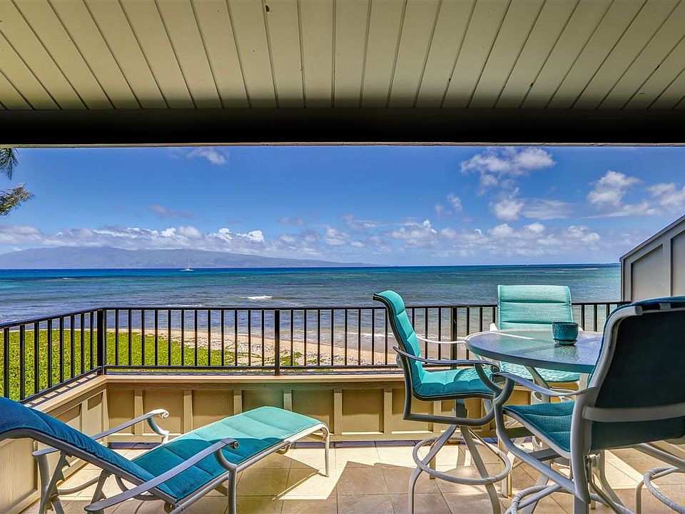 Stunning Ocean Front location with a sandy beach too! One of the best kept secrets in Kahana is Kahana Village, this is a well managed and well maintained property with an onsite management company that do an excellent job with the vacation rental program. Unit 34 is so tastefully decorated and is being sold fully furnished and turn key. Beautiful high vaulted ceilings and the views are just amazing. Travertine tile in the bathrooms with granite and stainless steel appliances in the kitchen. Simply beautiful interior, the beach look with an elegant touch. On caravan this next Wednesday August 10th.