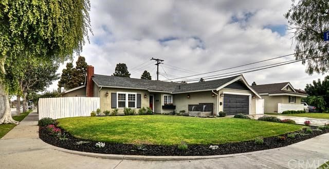 Beautifully and professionally maintained and upgraded corner lot home. From the outside to the inside, newly landscaped with fresh bark and new landscaping. Peaceful water fountain along the front entry to the welcoming Dutch front door. Modern paint inside and outside. Professionally designed cabinetry, crown molding, recessed lighting, new casings and windows, beautifully done. Newer carpets less than a year in bedrooms. Room for RV, toys on the side of the property. Backyard is perfect for entertaining with a new wood deck. Extra bedroom, makes this a perfect home with just enough rooms. Must see to appreciate! Ideal location close to schools, the Beach, downtown, Huntington Harbour, shops & entertainment. Easy access to freeways.