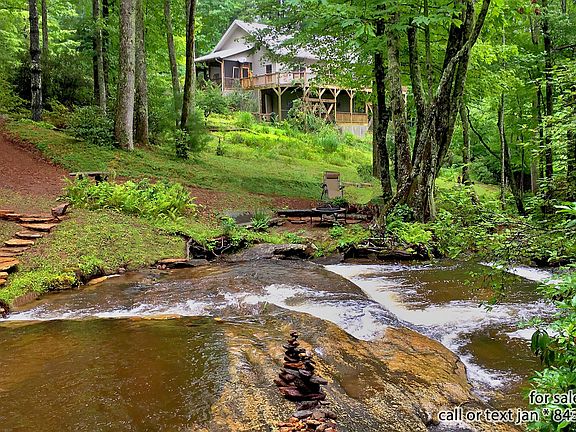 Welcome to "7 Falls." In the midst of the only rainforest east of the rockies, "7 Falls" sits on 4.5 acres with its own private rushing stream and waterfalls. This fairytale property truly is a mountain getaway with privacy and beauty to match. The backyard backdrop is the Nantahala National Forest. The custom built home has been very well maintained and is large enough to offer all of your family, friends and guests their own space. As you enter your own paved, gated driveway, you immediately get the sense you are somewhere special. Easy access to the home with all of the essentials for convenient mountain living on the main level.The great room is spacious and inviting and is centered around a wood burning fireplace. The open floor plan of this home also host a large dining area. The main level master ensuite bedroom has a gas log fireplace and its own private screened-in porch with a gas chiminea. The large master bathroom offers plenty of room for 2 vanity sinks, a porcelain claw foot tub and full custom tiled shower. Downstairs you will find three ensuite bedrooms with a gathering area and a laundry room off the back hall. In addition to the 4 ensuite bathrooms, there are also 2 half baths in the home. The french doors in the living area go out unto the wrap around backyard deck. This view of the Nantahala Forest and the rushing stream create the perfect ambiance! The stream, waterfalls, and mountain views are breathtaking! Below the home in the backyard is an observation deck for picnics and outdoor entertaining. Discreetly situated on the side of the property is a 20x36 steel building (built in 2017) that offers plenty of storage and would be a great workshop space. This listing is located between The Gorges State Park and Whitewater Falls on Whitewater Road. Cashiers is a short 20 minute drive, Brevard is a 35 minute drive, and Asheville is 1hr 15 minute away. This home is designed for year round use, either as a full time home or vacation getaway.