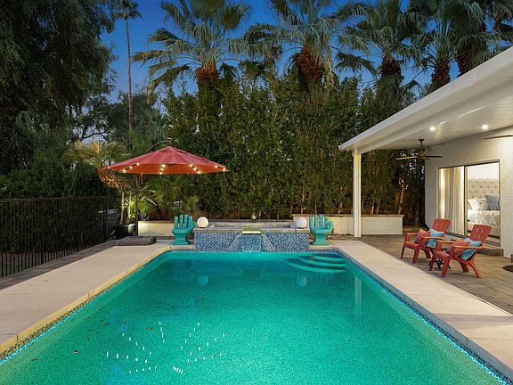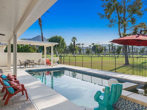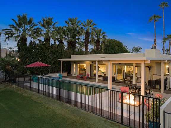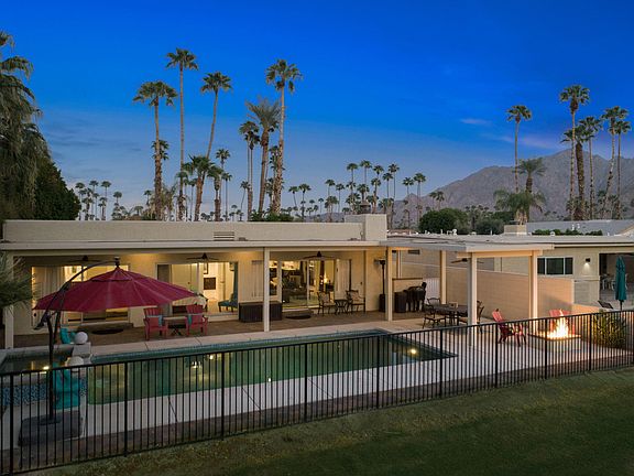 Mid-Century Modern newly remodeled and upgraded home on the prestigious Classic Course of Indian Wells Country Club. This beautiful furnished ultimate Haven is perfect for resort style living offering West-facing Panoramic Mountain, Pool and Triple Fairway Views! You will find custom Upgrades; new AC with Nest, new Roof, Ceiling Fans, custom Lighting, paint in neutral tones and Modern Furnishings. This open floor plan is perfect for entertaining. Upgraded Kitchen with Quartz Counters, center Island, Stainless Steel Appliances and rich cabinetry and wine cooler. Luxurious Master Suite has views out to the pool area through the Slider, large walk in shower and double sinks. For your Guests, 2nd and 3rd bedrooms with a separate updated bath. Separate Laundry. As you step out to the Patio, WOW~ you will enjoy the sparkling blue-tiled pebble-tec Pool and Spa with an expanded alumawood covered patio with ceiling fan, a built-in cozy fire pit to enjoy those glorious views and evening sunsets, a wrought Iron Gate encircles backyard for privacy ~ all at this premiere guard gated Indian Wells Location with No Hoa Dues! ~ IW residents receive numerous benefits, Paribas tennis tournament tickets, reduced golf rates at IW Resort, dining, Fitness and spa discounts.