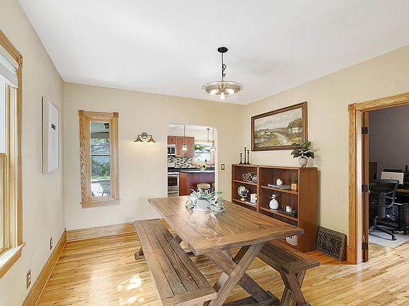 Step into timeless character and modern comfort with this 3-bed, 1-bath gem in the vibrant Northrup neighborhood. The open layout has beautiful archways seamlessly connecting the living room, dining area, and kitchen featuring a center island, soft-close cabinets, granite countertops, and stainless-steel appliances. Original wood flooring, exposed brick, and abundant natural light exude warmth throughout. Enjoy the private fenced backyard for outdoor entertaining, gardening, and relaxation. The basement offers plenty of storage and a built-in workbench for all your special projects. You'll love being within walking distance of Minnehaha Parkway, Lake Nokomis, delicious eateries, and shops. Your Minneapolis charm awaits! **New roof, skylight & refrigerator + newer HVAC, water heater, fence & front yard landscape.