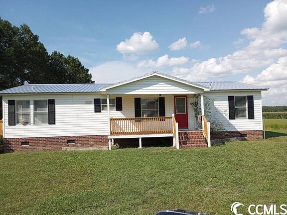 Enjoy peaceful and private country living on this 4.6 acre homesite but with easy access to the town of Loris (approx 10 minute drive) and the beach (hop on 9 straight to Cherry Grove!) This 3BR/2BA home comes equipped with modern kitchen appliances and washer/dryer. New owners can relax and enjoy views of the large pond, the beautiful pines or the neighboring farm. Confirmed with the county that the road is on the list of roads to be paved. Fish in the pond, use the extra space for a garden, raise farm animals, build another home for a family member. So many possibilities!