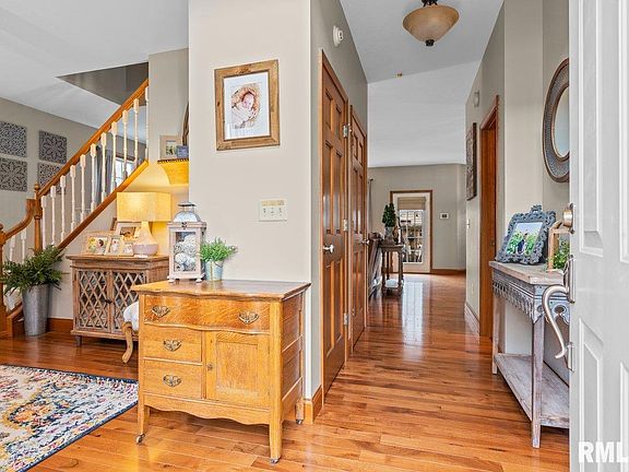 Beautiful home on the west side w/ built-in pool! Over 3500sf of living space in this 4 bedrm 3-1/2 bath home in Woodstock subdiv. A large 3 car Heated garage w/ Custom Cabinets & EV charger. The kitchen has elegant quartz countertops & newer SS appliances. Hardwood Hickory flooring throughout the main. A very large master w/ ensuite, steam shower, jetted tub & an incredible custom closet. A very nice rec rm in the bsmt w/ a wet bar & full bath. SO MANY Amenities...Upstairs laundry. Surround sound system inside & outside. Whole house Generator! A Trion Air Cleaner. House alarm. 2 water heaters. Heated floor in upstairs bathrm. Ducts cleaned in 2024. Irrigation lawn system. Pool is saltwater & heated (new pump-2024). Sangamon Valley Trail is within walking distance! (4th bedrm upstairs does not have a closet).