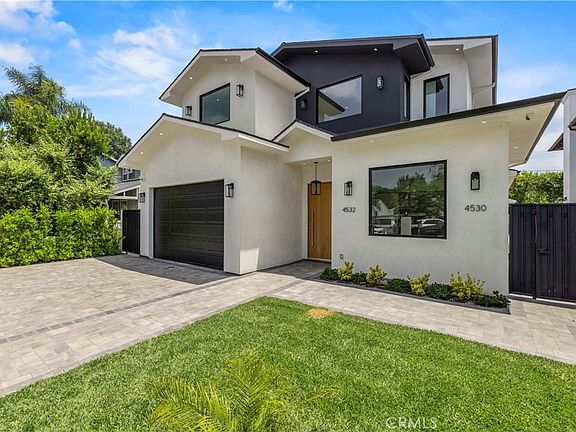 Welcome to 4532 Katherine Avenue a brand-new, ground-up construction in the heart of the coveted Library Square neighborhood of Sherman Oaks. This gated modern residence offers 3,161 sq ft of expertly crafted living space with 5 bedrooms and 5.5 bathrooms in the main home, plus a fully finished 515 sq ft ADU complete with its own bedroom and full bath ideal for guests or extended family. Designed with spaciousness and flow in mind, the home features soaring 11-foot ceilings on the first floor and 9.5-foot ceilings upstairs, creating a bright and open atmosphere. The living room is anchored by a sleek fireplace and floor-to-ceiling sliding doors that open to the backyard, delivering the ultimate indoor/outdoor California living experience. The gourmet kitchen is a true centerpiece, featuring high-end Bertazzoni appliances, custom cabinetry, designer finishes, and a built-in beverage cooler. Upstairs, the primary suite offers a tranquil retreat with a fireplace, built-in sink and beverage cooler, a spa-like en-suite bath, and a walk-in closet with custom shelving. This smart home is equipped with fully integrated technology to control lighting, fireplaces, HVAC, pool speakers, and a Sonos sound system, and it comes complete with a security camera system for peace of mind. Additional highlights include Hansgrohe faucets throughout, an attached garage, three separate HVAC systems (for each floor and the ADU), and a dedicated laundry room with Samsung washer and dryer included. Set on a quiet, tree-lined street in Library Square, this gated, camera-secured property blends modern luxury, high-tech convenience, and timeless comfort in one of Sherman Oaks' most desirable neighborhoods.