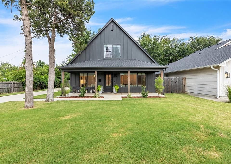 Nestled on a quiet cul-de-sac in Mayfair, this modern farmhouse built in 2020 offers 1,878 sq ft of light-filled living: 3 spacious bedrooms, 2½ designer-trimmed baths, and a bonus office/study. From the rich hardwood floors and quartz countertops to the stainless-steel appliance package and designer lighting, every detail shines. The luxurious primary suite features dual vanities, an oversized walk-in shower, and a huge closet. Enjoy morning coffee on the covered patio overlooking nearly half an acre of mature landscaping—or head inside to the oversized utility room with built-in storage. With a two-car garage and just minutes from NW 44th & Independence, country charm meets city convenience. Your dream home awaits at 4532 N Grand Blvd!