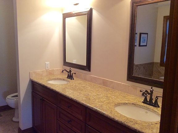 Enjoy over 3,500 square feet of living space in this Elegant Executive Walk-Out Ranch with a private split bedroom design located on a beautiful wooded lot just under one acre. High-End Finishes Abound. This was originally the Builder's own home and it shows! The main floor has an OPEN FLOOR PLAN with gorgeous hardwood floors with cherry trim. Kitchen offers stunning granite counter tops, magnificent marble floors with stainless steel appliances. A splendid floor plan for everyday living or entertaining. One side of the home has two large bedrooms with a full bath while the master suite is found on the other side for increased privacy. WALK-OUT to your deck to enjoy dinner with a sunset view! New deck expansion including stairs that lead down to the fully fenced in back yard. Basement boasts an additional 1,700 SF of finish with a 4th Bedroom and spacious ¾ bath. Huge wet bar with a granite and stone fireplace. Walkout to your private patio. New Water Heater and Exterior Paint 2018.