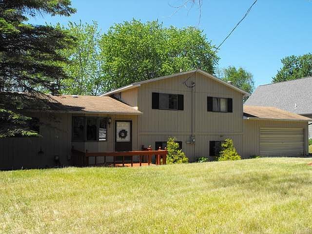 WIGGINS LAKE WATERFRONT!!!! Great year round or vacation home for a large family. Four bedrooms with 2 masters, fire lit Living area with an awesome lake view, 2 very large full baths, huge family room in the lower level, attached garage and very unique Island with bridge out on the waterfront with sandy bottom shoreline on most of the frontage. This family is highly motivated. They LOVE Wiggins Lake but need to downsize due to activities. Sellers will consider Land Contract with a sizable down and negotiable terms.