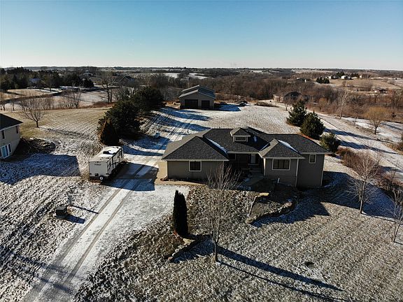 Welcome to your dream home, nestled on a peaceful 3.25-acre lot that perfectly blends comfort and luxury. This custom-built ranch is thoughtfully designed with durable 2x6 construction, offering both efficiency and long-lasting quality. Unwind by the gas fireplace in the sunken family room, ideal for cozy nights and entertaining. The kitchen provides abundant counter space and cabinetry, perfect for preparing meals, especially during the holidays. The dining area opens to a newer composite deck and two concrete patios ideal spots for outdoor gatherings while enjoying the tranquil, tree-lined views. This home features three spacious bedrooms, including a master suite with a walk-in closet and a luxurious bath complete with a Jacuzzi tub and double vanity. The finished walkout basement offers a large family room, an additional bedroom, a kitchenette, and a recreational area—ideal for guests or family activities. For those seeking extra space, the 40x64 insulated pole barn is fully equipped with electric and propane heating, a sink, and a spacious loft area perfect for relaxation and entertainment. With ample workspace and room for vehicles, this barn also provides space for a workshop. Located just off the pavement within the Southeast Polk School District, this property offers privacy and the beauty of country living while remaining close to a variety of amenities. Your personal retreat is waiting!