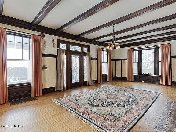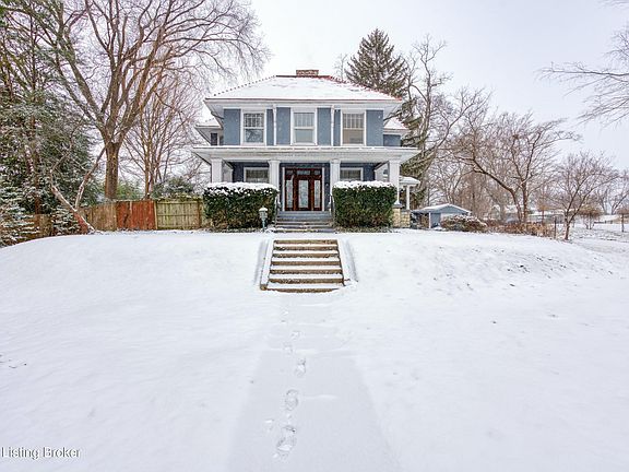 Watterson Expressway, this unusually private property includes 2 separately deeded lots. The main house with over 3,400 sf boasts 10' ceilings, amazing decorative fireplaces, incredible original moldings, original hardwood floors, solid wood doors, beautiful original windows, and a sprawling front porch overlooking the expansive front yard. Kitchen and baths are partially renovated. The cozy Guest Cottage is primed for finishing back to a 2 bed, 1 bath separate home with fireplace.