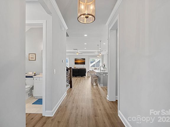 Welcome to this gorgeous spacious and light filled home in Magnolia Cove! And to make it even better... there is an assumable loan available for qualifying buyers at an unheard of 2.5%!! Walking in from your covered front porch, you'll notice the ideal open floor plan that leads to your chef's kitchen with quartz countertops, oversized island, soft close cabinets, stainless steel appliances and tiled backsplash which opens into the sizable living area featuring 11' trey ceiling and ample sized dining space. Primary suite on the main level includes a large walk in closet with access to the laundry room as well as a huge tiled shower with bench and spacious dual vanity. Additional bedroom and full bath on main level as well for added convenience. Upstairs you'll find 2 guest rooms, a flex space and full bath. Enjoy relaxing evenings on your covered back patio. Lawn maintenance included! Convenient location close to restaurants, shopping and Lake Norman!