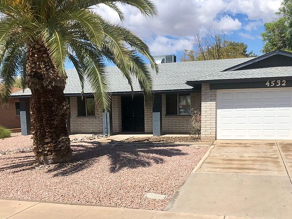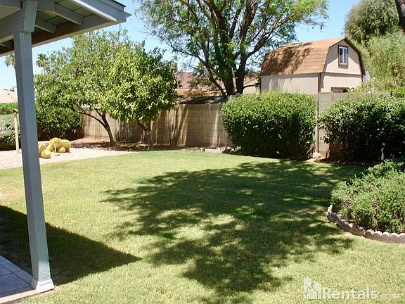 All appliances included. 3 Bedroom, 2 Bath,1,689 square feet. Fresh paint and carpet. Two car garage w opener. RV gate, washer & electric dryer. Electric stove, dishwasher, 26 cu. ft. 2 door refrigerator w ice and water in the door, walk-in kitchen pantry. Water softener, living room, family room, dining room. Large master bedroom w ceiling fan, vanity, double closet, Arcadia door to patio and backyard, en-suite 3/4 bath, w walk-in shower. Wood blinds throughout. Tile throughout, except carpeted bedrooms. Mature landscaping, grass in backyard, automatic watering system in backyard. Covered patio, lots of shade and grass. Locking mailbox at the curb. Great neighborhood with tons of pride of ownership. Awesome location ....Walk to ASU West, near Banner Thunderbird, and shopping. By Owner.