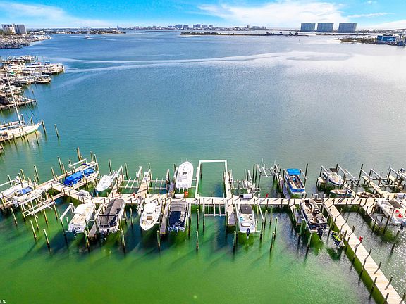 If you are looking for convenience to everything Orange Beach has to offer, this is it! This gated, waterfront complex is within minutes of all the popular local restaurants, entertainment, and the white sand beaches. Not only that but this unit comes with your very own deeded boat slip so you can easily hop on your boat and enjoy the waters of the beautiful Gulf Coast. All the boat docks have been completely rebuilt and the slip comes with access to power and water. This unit is being sold fully furnished and features updated light fixtures, tile flooring throughout main living areas and kitchen, a newer HVAC replaced in 2021, and a full-sized washer/dryer. The master suite offers access to the spacious private balcony as well as a walk-in closet, jetted garden tub, and separate shower. This unit is unique in that the owners have added a 3rd bedroom with bunks so you can sleep additional guests! There are also two assigned covered parking spaces and outside storage. Note: 30 day minimum for rentals.