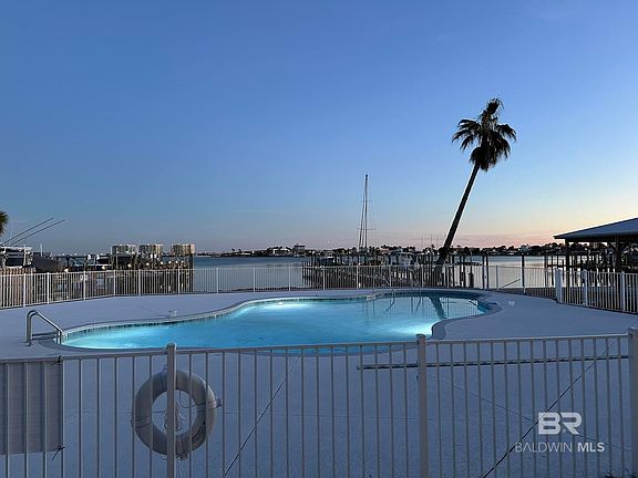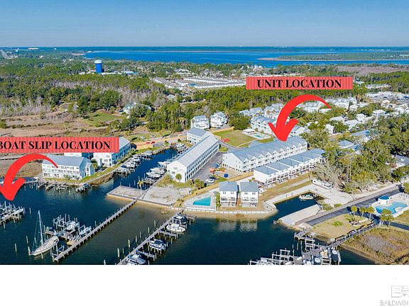 Beautiful and spacious Condo with peek through views of popular Terry Cove, with BOAT SLIP #F4 AND 10,000lb lift! There is not a better location for the boater who likes to spend their weekends zipping to all of the hot spots of Orange Beach! This condo would make a perfect primary residence or 2nd home. Home is completely furnished and turnkey! Kitchen and baths with beautiful granite counters. The kitchen counterspace is uniquely accented with live edge wood across breakfast and coffee bar areas. Recessed lighting and ceramic tile throughout. The primary bedroom shower has been beautifully upgraded eliminating the soaker tub to add an oversized walk-in shower with floor to ceiling tile and glass shower walls. Large walk-in closet, separate commode, and double vanity. Enjoy bay views from your oversized balcony, accessible from both the living area and the primary suite. The entire building has recently received all new windows, slider doors, exterior paint and metal roof- all just like brand new, because it is! The HVAC has also been recently replaced in the last few years. This unit could also have a bunk room added to the utility room and be called a 3 bedroom like many of the others listed, but as it sits- there is a large laundry room and plenty of room for storage in the utility area. There are two parking spots below the unit just adjacent to the elevator. Use both spots for parking, OR set up your own little covered patio area to enjoy evenings after returning from the boat. The complex has 2 pools to enjoy, and the 2nd is just now being finished up from being completely redone. The 2nd pool is waterfront and will be an awesome spot to relax and watch all of the summer boat traffic and waterway happenings. This seller is willing to pay the 2024 and 2025 assessments at this price!!