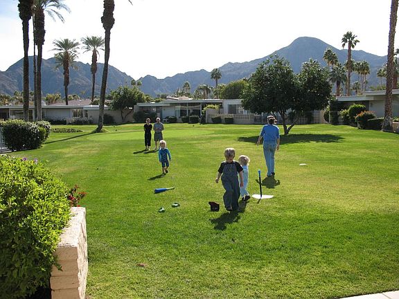 Gated complex featuring 4 holes of 3 par golf; two tennis courts; 6 swimming pools, loads of fruit trees, beautiful open landscape, and lovely neighbors This Mid Century Modern development prohibits short term rentals, but 2-3 month snowbirds are more than welcome!