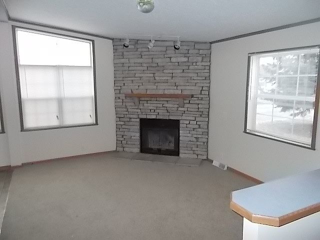 This home has over 2000 square feet. 3 bedrooms and 2 full bathrooms. 3 walk-in closets. Formal dining room. Step down family room with a natural wood burning fireplace. Kitchen is adjacent to the family room with a large Island snack bar for high bar stools. Dark brown kitchen cabinets with a pantry, all appliances stay. Picture window over the kitchen sink. Formal living room. Very unique floor plan. Outside has central air and large storage shed. Priced to sell for only $44,999. Immediate occupancy, seller motivated.