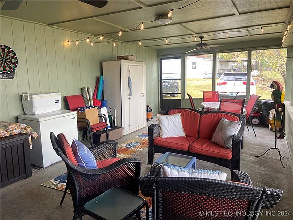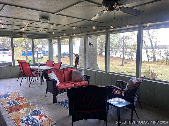This updated home offers a stunning lake view of Rabbit Island, making it a perfect retreat. Enjoy the screened-in porch year-round, with the option to enclose it if desired. The bathrooms feature beautiful walk-in showers and modern fixtures. The spacious bedrooms are conveniently located on either end of the house, providing privacy. The kitchen boasts ample cabinet space and is ideally situated next to the dining room/game area and a large living room with a fireplace. The living room's wall of windows ensures an uninterrupted view of the lake. The good-sized yard provides room for expansion, and there's an easy slope to the shore with a fishing dock. A wonderful blend of comfort and natural beauty! Red Arrow Marina is a short distance away and access is through the community. No HOA - AirBnB/VRBO allowed.