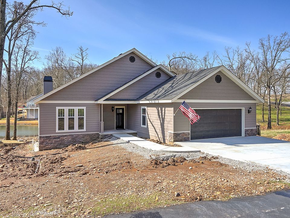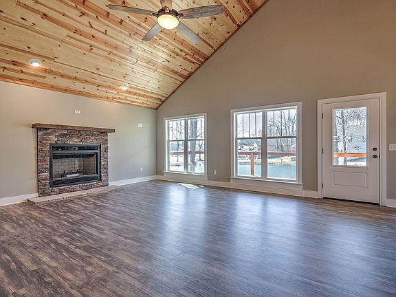 NEW CONSTRUCTION! Lake view home sets next to the ponds in The Vintage. Your Boat slip is a short walking distance to the lakeside. Beautiful layout and design. 4 spacious bedrooms. Master on main level. And opens to a private deck, from the office space in the room. Downstairs has a spacious family room/game room, plus 4th bedroom and bath. Opens to a great patio. Kitchen has huge island with rock finish & opens to the dining area. Custom cabinets with under lighting and pantry. Main living area has beautiful knotty pine vaulted ceiling and fireplace. Covered deck has plenty of room for outside entertaining. Vintage amenities include gated community, boat ramp & parking, loading dock, swimming pool & walking trails. Great location on the lake. (Additional lot next door w/slip avail)