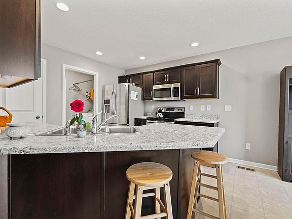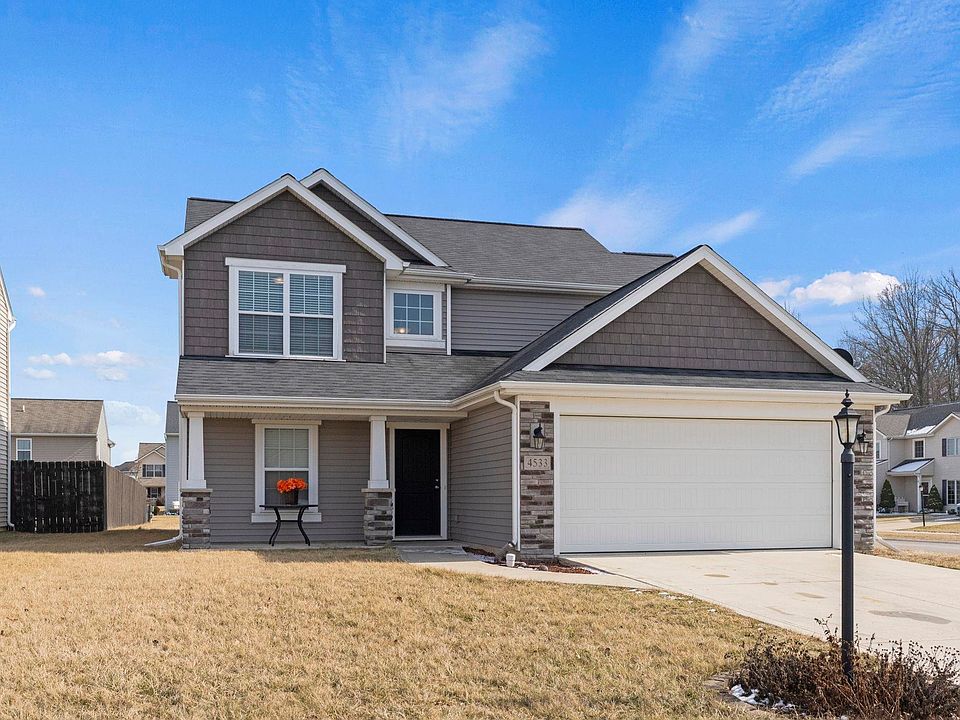 Welcome to this exquisite 8-year-old home nestled on a charming corner lot within the prestigious CastleRock subdivision! Step into the inviting great room, where a sense of spaciousness welcomes you, seamlessly merging with the adjacent kitchen and cozy breakfast nook. The kitchen, adorned with stainless steel appliances, boasts ample cabinetry, perfect for culinary enthusiasts. Discover additional storage solutions in the conveniently located laundry room. Ascending to the upper level, you'll find three bedrooms, each offering comfort and tranquility. The expansive primary bedroom features a luxurious en suite bathroom, providing a private sanctuary for relaxation and rejuvenation. Don't miss the opportunity to make this stunning residence your own. Schedule your showing today and embark on the journey to call this captivating property home!
