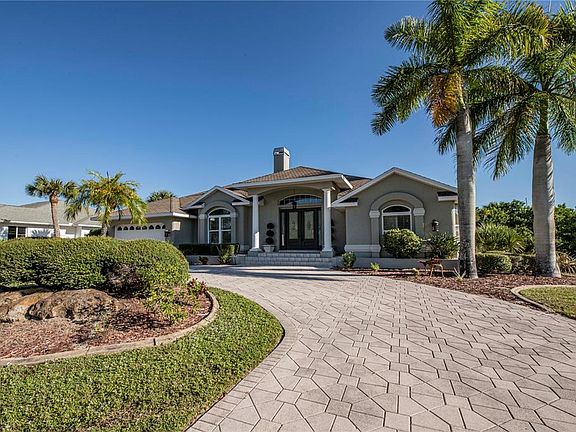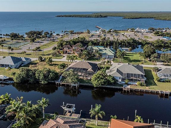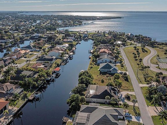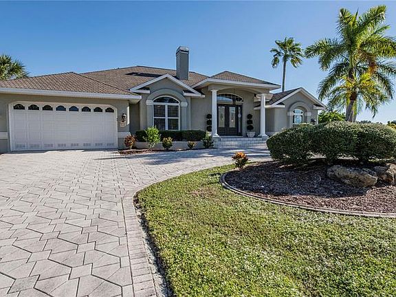 *BRAND NEW 28K ROOF BEING INSTALLED + NEW SKYLIGHT** IMMACULATE 3/2.5/2 saltwater canal ,POOL/spa HOME with quick SAILBOAT ACCESS on a WIDE CANAL in prestigious beach section -- 100 feet of FRONTAGE, less than 1 minute to the open water of the Charlotte Harbor and the Gulf of Mexico! This GRANDIOSE beauty is nearly 2700 square feet and is located on a quiet cul-de-sac road directly ACROSS THE STREET from PORT CHARLOTTE BEACH!! Featuring a manicured lush, tropical landscaped yard with concrete curbing, an oversized circular brick-paver driveway - perfect for entertaining, sunburst windows for abundant natural lighting, a gorgeous pillared front entryway with dual leaded glass front doors that add to the stately feel of this home! This impeccable, luxurious home showcases soaring high vaulted ceilings, plantation shutters, planter shelves, unique architectural finishes, split bedrooms with 2 master suites, a POOL ACCESS BATHROOM, a formal dining room with wet-bar, a gas fireplace in the living room/formal dining room, custom sliders throughout with a wooden French Door flair and no carpet anywhere!! The monumental kitchen boasts stylish glass tiled backsplash, granite counters, new stainless appliances, dinette eat-in space, beautiful pendant lights and a pass through window to the pool wet-bar! The regal master suite has alluring water views, a charming painted tray ceiling, plantation shutters, slider access to the pool, a large walk-in closet with abundant shelving and a ravishing en-suite bathroom with ambient garden tub for soaking, vanity seating space, dual sinks, a classy tiled shower and a divine private commode room with bidet! The guest bedroom quarters can be closed off to the rest of the home with the pocket sliding door for added privacy. Both of the guest bedrooms have majestic vaulted ceilings - one guest bedroom is an en-suite with private slider access to the pool! The pool area was made for entertaining and relaxing! Featuring an impressive brick-paver deck with bountiful covered and open-air space to relax or soak up the sunshine, PLUS a wet-bar, pool access bathroom, outdoor shower, spa with serene waterfall feature all overlooking the canal!! *Can be sold turnkey furnished if desired, separate fee applies! NO HOA and no deed restrictions!! Home has an over-sized garage and an inside laundry room with utility sink! FABULOUS LOCATION!! Port Charlotte Beach Park directly across the street offers a boardwalk with fishing pier, a public boat ramp, canoe/kayak launch, playground, heated swimming pool, basketball courts, tennis courts, horseshoe pits, bocce courts, shelters with picnic tables and a recreation center. This is the Florida lifestyle you have been dreaming of - you must see this elegant home TODAY!!