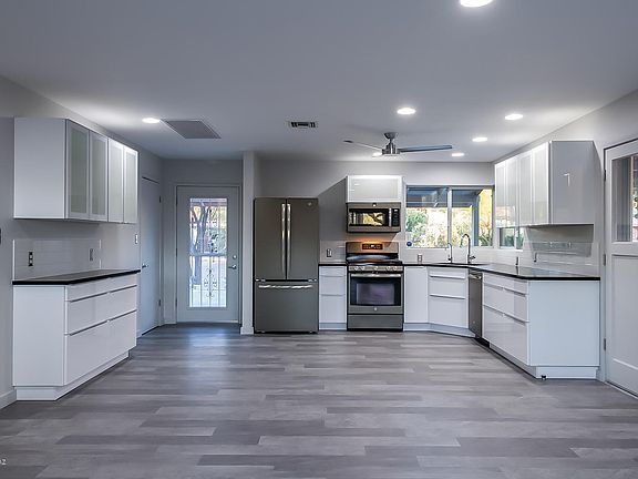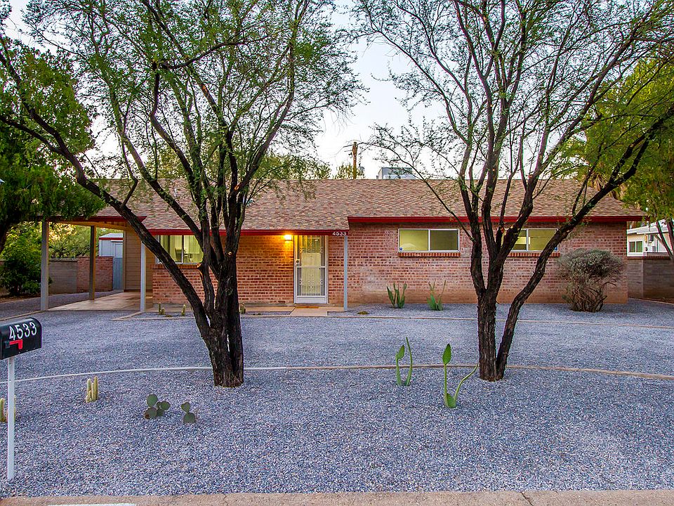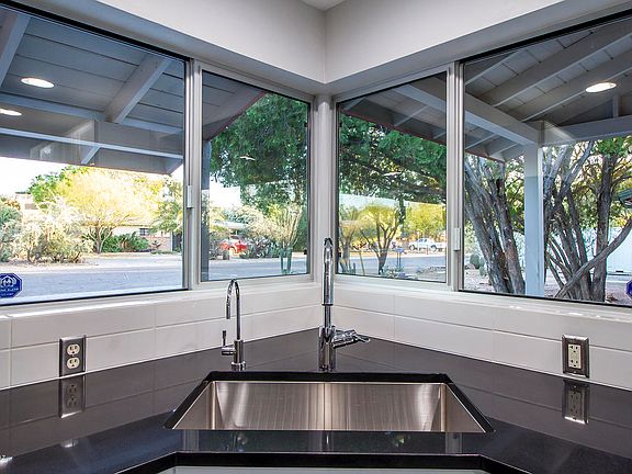 * Mid-Century ranch located on a quiet cul-de-sac street. Crisp modern renovations with attention to detail. Bright and open floor plan with views of the Catalinas. Sleek and highly functional kitchen with quartz countertops and GE Slate appliances. Energy efficient brushed aluminum-argon filled-low E double pane windows, R-38 insulation, recessed LED lighting. Great interior storage with the addition of two exterior storage spaces. The xeriscaped yard is easy to maintain and being very inviting. Circular drive and attached carport. minutes to to TMC and shopping ( Trader Joe's, Frys and Bashas) and entertainment.... Virtual Tour under photo tab .