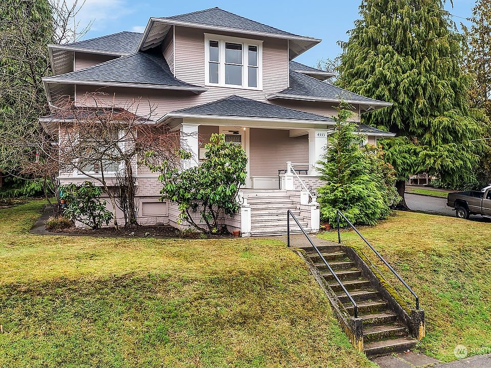 Classic Craftsman legal triplex in prime Wallingford neighborhood just short walk to Lake Union, Gas Works Park, Fremont, N 45th St business district, Green Lake & The Ave! Located on huge 6,840 square foot corner lot in a walking neighborhood with 89 walk score! Top floor unit #3 is a spacious 2 bedroom apartment with inspiring views of the Cascades, Mt Rainier & surrounding neighborhood and features spacious kitchen with eating bar, big living room, large walk in closets, deck and east, north, west & north facing windows that bathe the interior in natural light. Units 1 & 2 are spacious 1 bedroom apartments. Private back yard with plenty of room for outdoor grilling, activities and gardening. Basement storage and a detached 2 car garage.