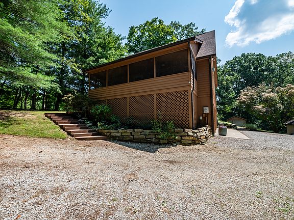 Escape to tranquility in this beautiful 3-BD, 2-BA home nestled on 3 parcels combined for over 10 acres in the heart of Brown County, IN. This stunning property offers the perfect blend of rustic charm and modern comforts, making it ideal for your new home or a retreat for those seeking peace and serenity. The open living area is filled with natural light and perfect for hanging out with family or hosting friends. The kitchen boasts modern appliances and ample counter space. From there you can walk out on to the large back deck and enjoy the outdoors while overlooking your very own pond! Perfect for fishing, relaxing, or just soaking up the views. Hosting a movie night or watching the big game on the weekend? You can do this in your own recently built outdoor pavilion down by the pond, complete with a built-in projector, screen, and bluetooth speakers. It's the perfect spot for entertaining or unwinding by the water. In the mornings, step out onto your the screened in patio to enjoy your morning coffee. The big yard plus acreage is great for gardening, playing, hiking through the woods, or just enjoying the fresh country air. Need extra space for hobbies or projects? Check out the versatile outbuilding/shop, ideal for woodworking, crafting, or auto shop. Keep your tools and outdoor equipment organized in the convenient adjacent storage shed. The extra room on the main floor and the one in the basement make for a perfect office or place to read or watch TV. The home also includes a 2-car garage as well as plenty of storage space. This charming home has a little bit of everything. Peaceful and quiet, but still close to schools, parks, and local amenities. The entire house and decks around the house were painted in July 2024. Don't miss out on making it yours! Call today to set up a showing and see for yourself.