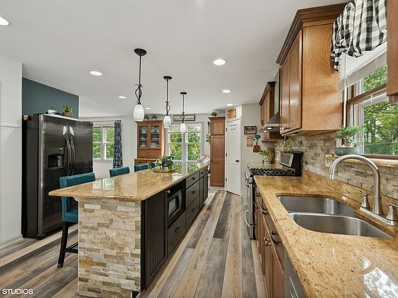 Peaceful and private location in unincorporated Crystal Lake, just steps away from Silver Creek Conservation. 840 acres of land with 5 miles of nature trails, birdwatching and educational opportunities right out your door! Large fenced in yard is ideal for pets and children. The remodeled kitchen is a show stopper with a huge island, pantry, and dining area. Great place to gather and live your best life! Lower level has a 4th bedroom/den, a spacious and sunlit family room and a large laundry room with a walkout to the great outdoors! Excellent schools and a great place to call home.